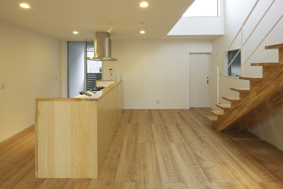 敷地面積:113.41㎡ 建築面積: 56.39㎡ 延床面積: 89.87㎡+小屋裏収納 木造2階建て:新築